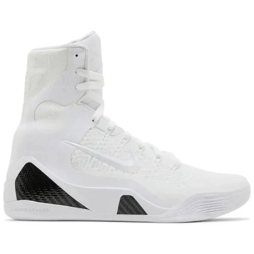The Nike Kobe 9 Elite Protro 'Halo' delivers a blank-slate colorway of Kobe Bryant's ninth signature shoe. Built with an elongated knit collar, the upper features engineered mesh construction in a stark white finish. Flywire cables are integrated into the lacing system for midfoot lockdown, while a carbon fiber heel counter provides rearfoot stability. A white foam midsole offers lightweight cushioning with every step. Underfoot, the rubber outsole utilizes a traction pattern that mimics the natural contours of the foot.